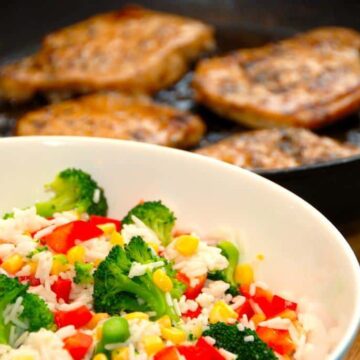 • fedtfattig mørbrad med grøntsager i fad