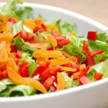 • En både flot lækker sprød salat med tørrede abrikoser. Crisp salaten sørger for sprødheden, mens de tørrede abrikoser giver farve og smag til salaten. Foto: Guffeliguf.dk.