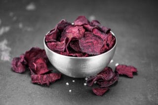 Opskrift på hjemmelavede rodfrugtchips i ovn, hvor du på 10 minutter tryller rodfrugter om til de lækreste og sprødeste chips. Uden fritureolie.