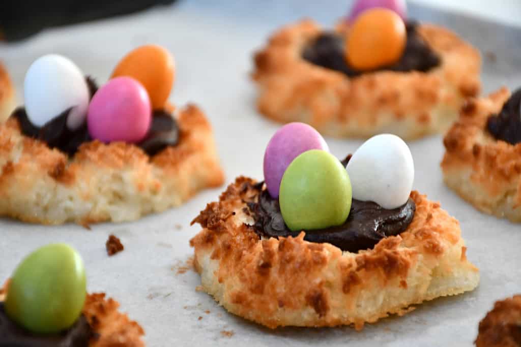 Her får du opskriften på de lækreste påskekager - nemlig kokosreder, der minder om kokostoppe, men er formet som fuglereder og fyldt med chokoladeganache og påskeæg.