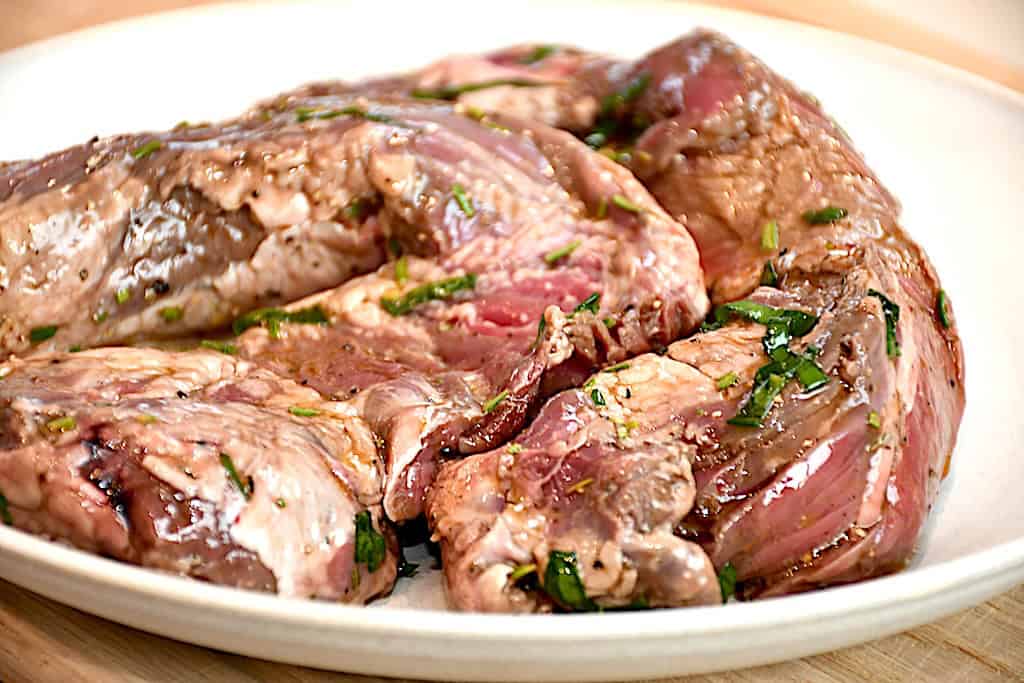 Ønskes marinaden mere spicy, kan der tilsættes lidt chili, men jeg kan godt lide at ramsløgssmagen får lov til at stå lidt mere frem. Det er en smagssag.