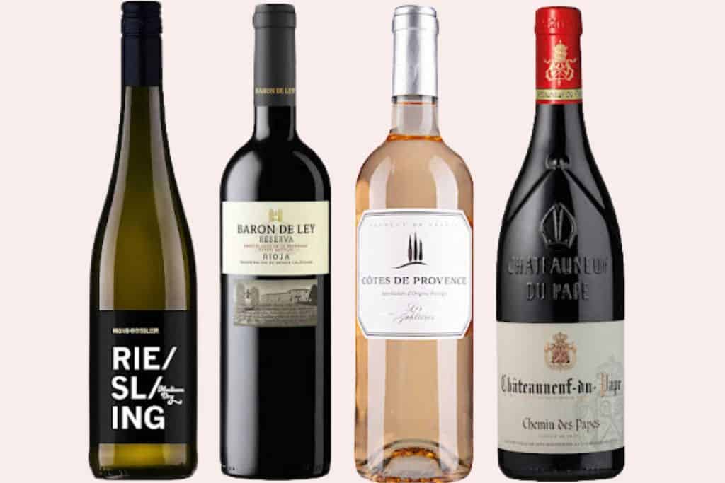 Riesling (halvtør), Chardonnay (tør) og Pinot Gris (halvtør), Rheinhessen, Tyskland